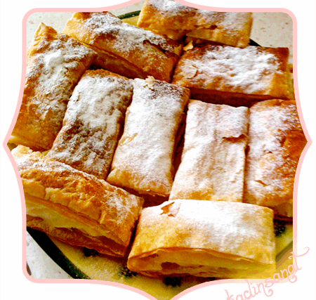 Tatlı krizi geldiğinde, “tatlıı” diye kıvrandığımda bu tatlı yetişiyor imdadıma. Buzluktaki milföyler çıkarılıp buzları çözülüyor …