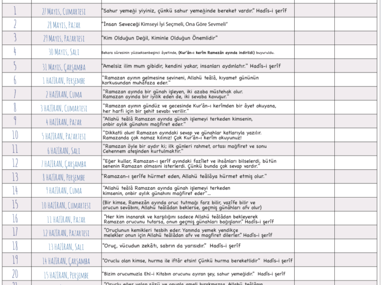 2. […] için Ramazan Takvimi hazırlama fikri ilk 2017 yılında ikizlerime hamileyken aklıma gelmişti. O günden beri kadinsanat üzerinde Ramazan’da en çok aranan […]
