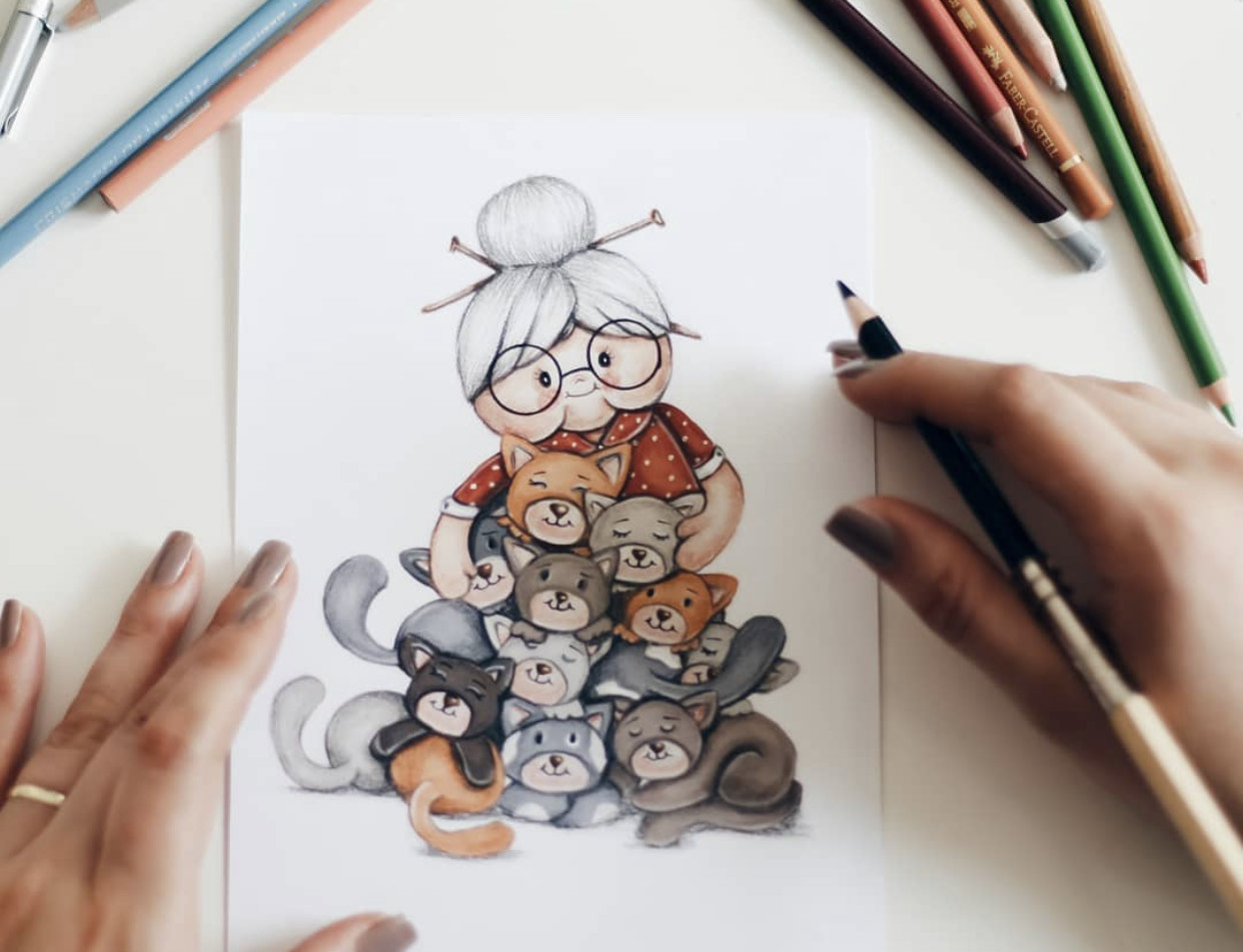 Çalışma saatleri ve nöbetleri zor bir meslek olduğundan, çocuklara daha fazla vakit ayırmak istediğim için mesleğimi bıraktım ve evde önce eşimi izleyerek Photoshop öğrendim. Öğrendiklerimi kendim de geliştirdikten sonra Web Designer olarak bir süre çalıştım. Sonrasında kalem ve kağıtla temas edip resim alt yapımı ilerletmeye karar verdim.