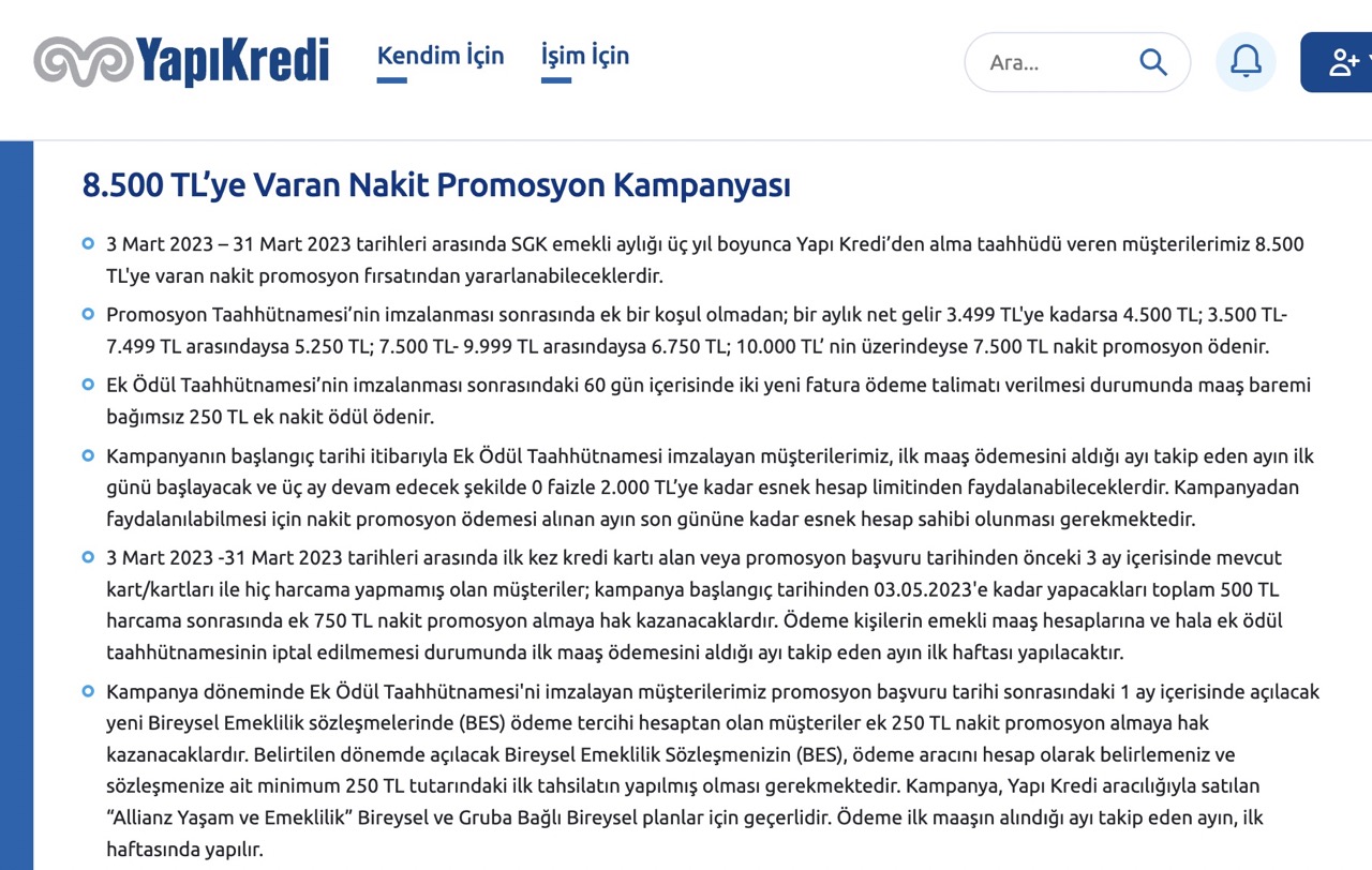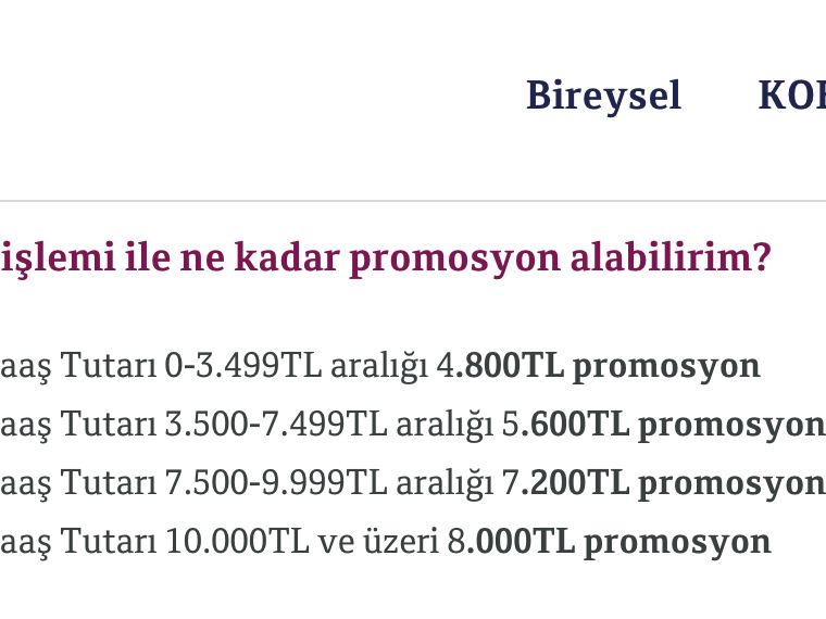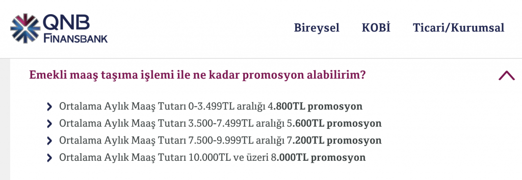 • 10000 ve üzeri olan emekli maaş hesaplarına 8000 TL promosyon veriyor.