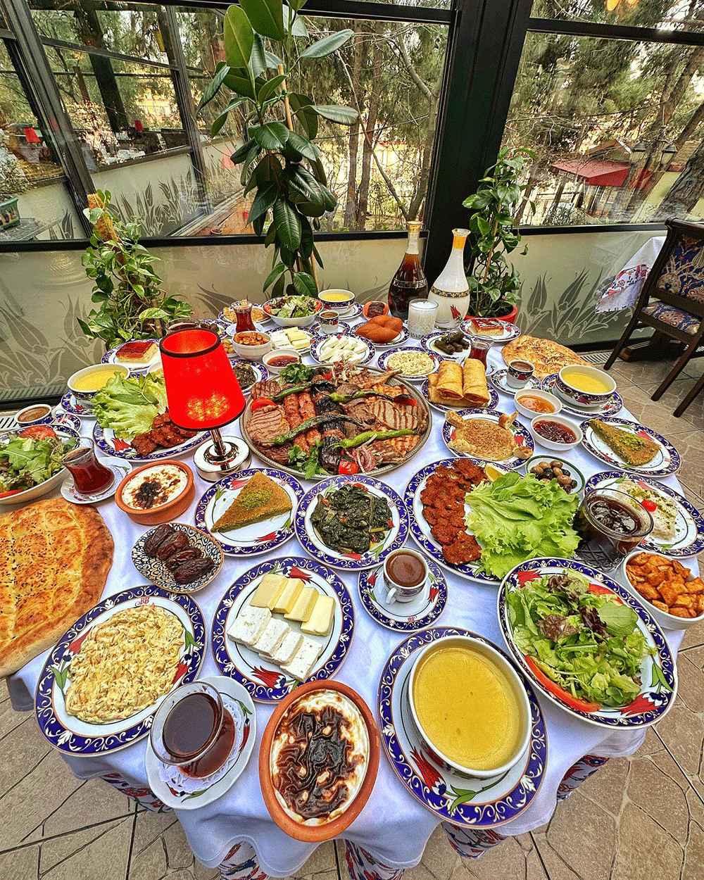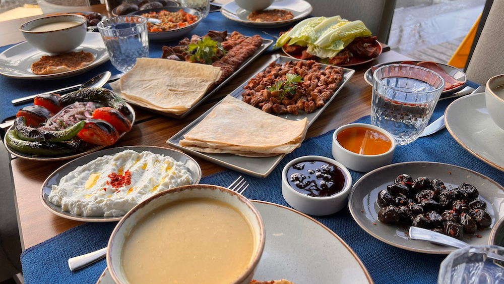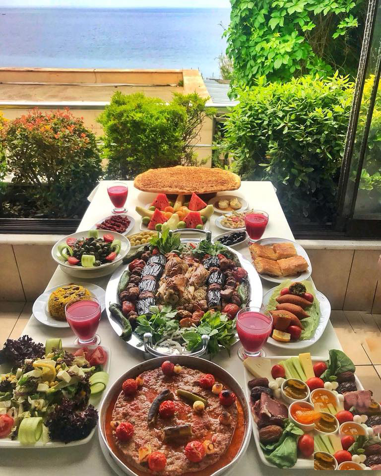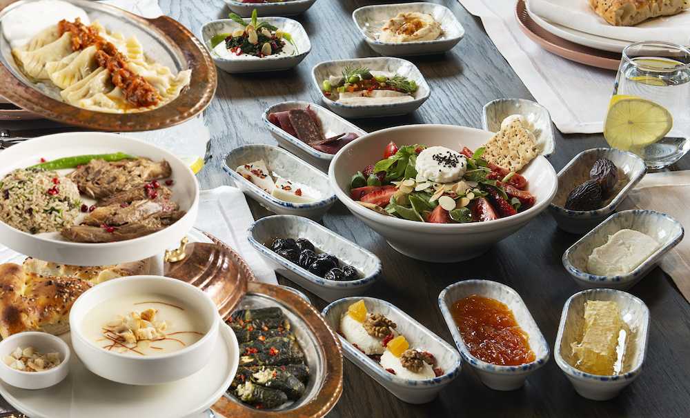 İftariyelikler: Çanakkale Ezine Peyniri, Hurma, Bitlis Balı, Gemlik Zeytini, Taze Kaymak, Antakya Halhali Zeytin, Ev Reçeli, Kayısı, Ceviz