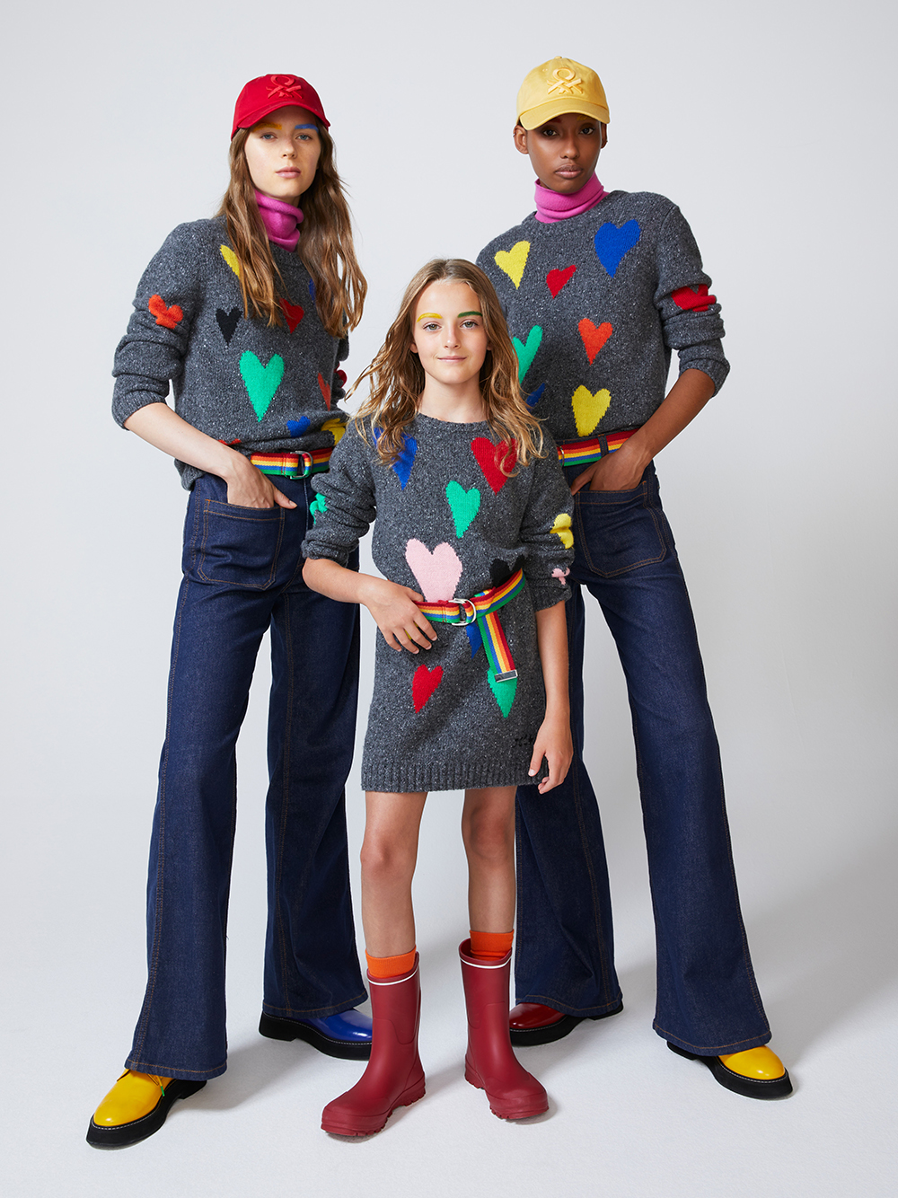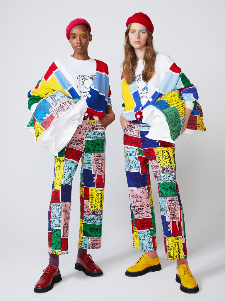 Kadın, erkek ve çocuk kategorileri için hazırlanan koleksiyonda iddialı renklerin çizimlerle buluştuğu tasarımlar dikkat çekiyor. United Colors of Benetton’un DNA’sına işleyen yeşil, kırmızı, lacivert ve sarı tonlarını bir arada kullanan Jean-Charles de Castelbajac renkli tasarımlarını ikonik çizimleriyle harmanlıyor.