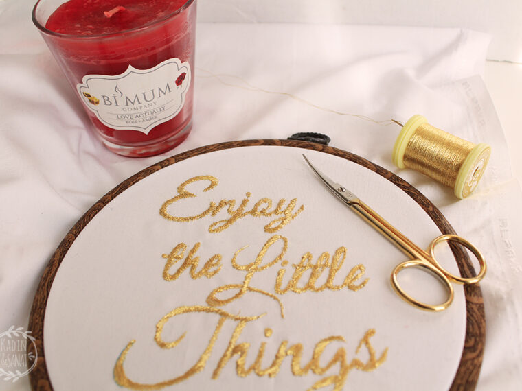 Derken, ben o tekli koltuğumda bu panoyu işlemeye başladım. Pano dediğime bakmayın, belki yastık olacak.. Belki başka bir şey. Daha karar vermedim 🙂 Bu tür işlerde de şıpsevdiyimdir. Kurdele nakış kursuna başladım, yarıda bıraktım misal.. Öyle elimde günlerce sürünecek işleri sevmiyorum. Başlasın ve bitsin istiyorum. Bu da öyle bir anda oluverdi işte..