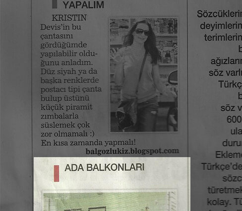 Blogum 30 Ağustos tarihli Haber Türk gazetesinde Web Günlüğü bog köşesinde Ada Balkonları yazım ile …