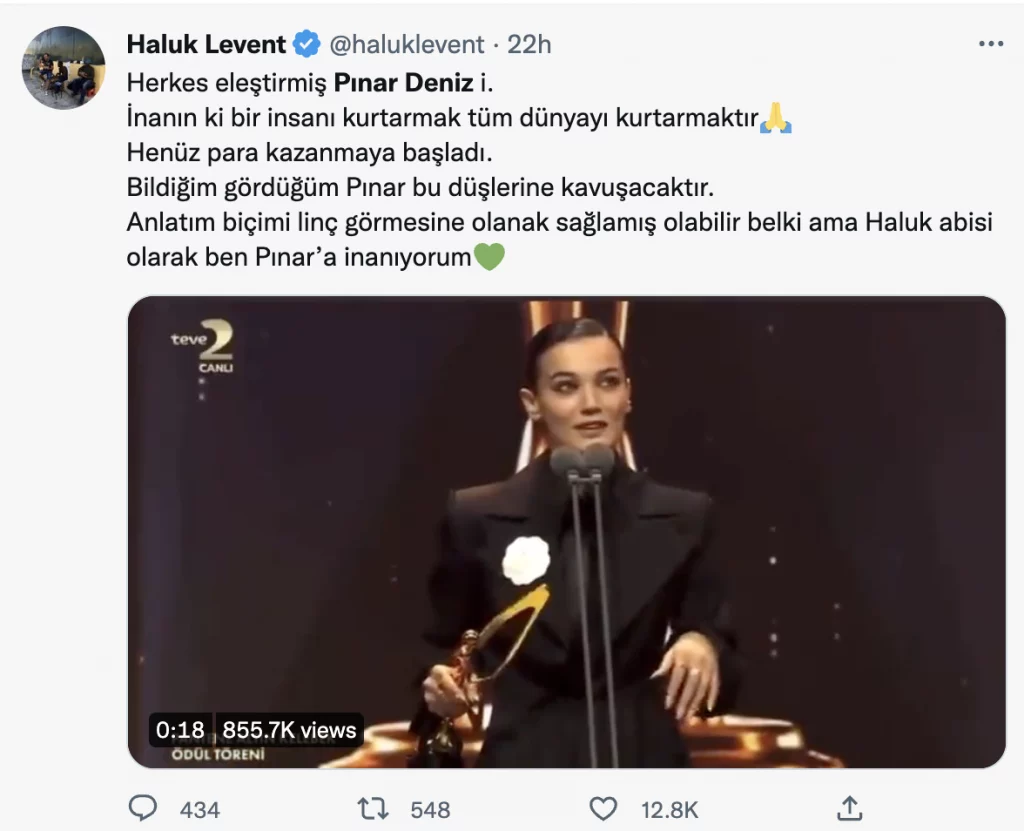 Ama Haluk Levent güzel oyuncuya destek oldu: