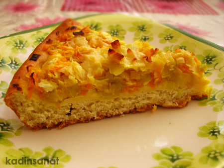 Benim pırasalı uyduruk pizzamın tarifine geçeyim: