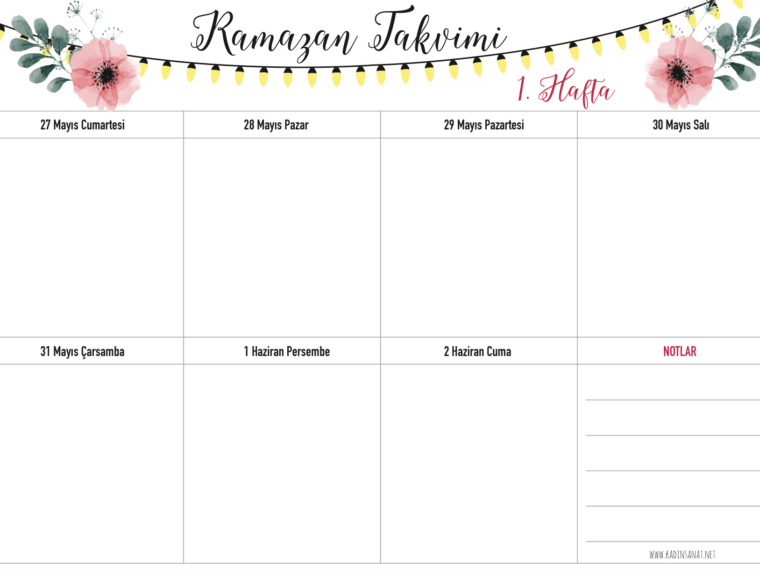 Bu takvimin çıktısını alıp buzdolabınıza asabilir, üzerinize günlük menülerinizi yazabilirsiniz. Ya da o gün davet edeceğiniz kişileri. Kullanımı tamamen size kalmış.
