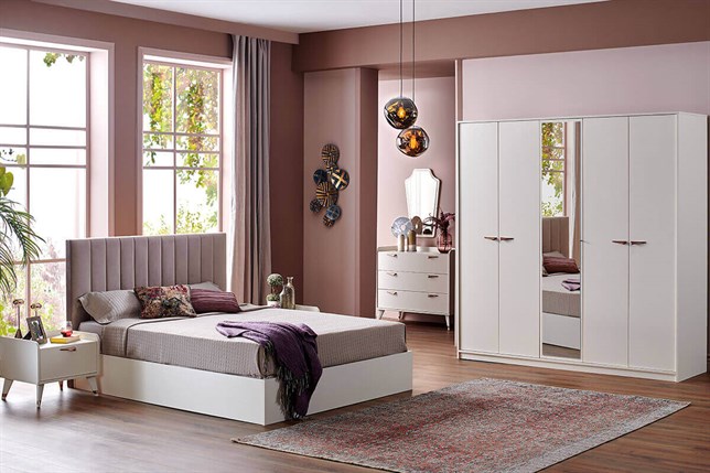 Geniş iç hacimli baza, dolap ve şifonyer gibi yatak odası mobilyaları fazla eşyalarınızı depolarken fonksiyonel şıklığı da yatak odalarınıza taşır. Yüksek taşıma kapasiteli raylı çekmece sistemleri sayesinde şifonyer ve komodinler uzun ömürlü kullanım avantajı sunar. Gizli bölmeli şifonyerler ile bölmeli komodin çekmeceli yatak odası takımı özel eşyalarınızı rahatlıkla saklamanıza yardımcı olur. Yenilikçi tasarımı yalın ve zarif detaylarla birleştiren aynalar ise yatak odanızda estetiği tamamlarken, odanızın geniş ve ferah bir görünüm kazanmasını sağlar. Gardırop, çok sayıda kıyafetinizi depolayabilmeniz için raflı bölmeler ve pantolonluk ile işlevselleştirilmiştir. Hem şık hem de kullanışlı olan yatak odası takımı ürünlerini ayrı ayrı alabileceğiniz gibi takım halinde de satın alabilmeniz mümkün.